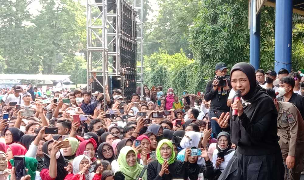Vokalis Band Kotak, Tantri berhasil menggebrak Lapangan Ahmad Yani, Alun-alun Kota Tangerang dalam gelaran Konser Kebangsaan Gus Muhaimin, Minggu (12/6/2022).