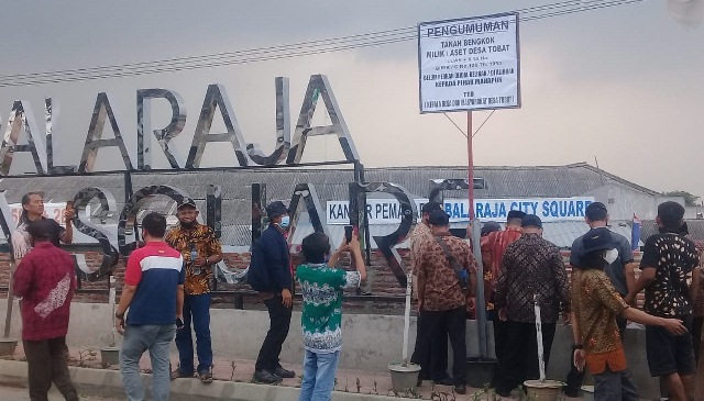 BALARAJA–Lokasi pembangunan Balaraja City Square, di Pasar Balaraja, Desa Tobat, Kecamatan Balaraja, Kabupaten Tangerang disoal warga. Pasalnya, warga menduga kuat lahan yang digunakan dalam pembangunan pasar tematik tersebut adalah tanah bengkok atau aset miliki Desa Tobat yang belum pernah dijualbelikan atau dialihkan kepada pihak manapun.
