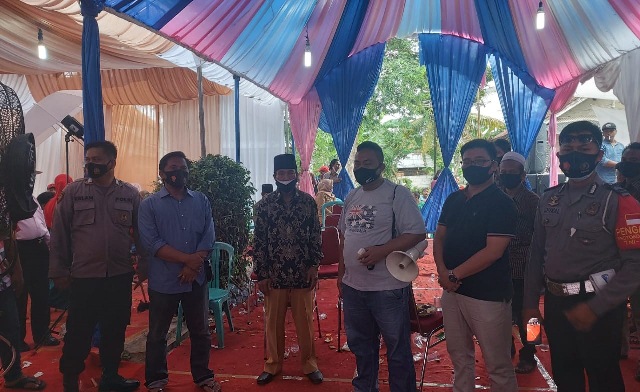 KEMIRI –Gelar pesta pernikahan dan hiburan organ tunggal dimasa pandemi Covid-19. Petugas kepolisian gelaran hiburan organ tunggal dalam acara resepsi pernikahan yang digelar di Kampung Karang Anyar, RT 02/01, Desa Karang Anyar, Kecamatan Kemiri, Kabupaten Tangerang, Sabtu (21/11).
