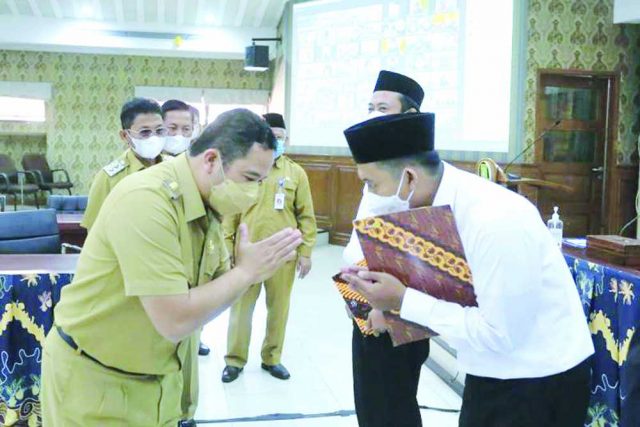 Berdasarkan nota pertimbangan teknis nomor induk PPPK yang telah ditetapkan oleh BKN, dilanjutkan dengan pengangkatan PPPK oleh kepala daerah selaku pejabat pembina kepegawaian. “Maka saat ini dilakukan penyerahan SK pengangkatan guru bagi yang lulus tahap 1 sebanyak 1.200 orang, sisanya pada tahap II masih dalam proses nomor induk di BKN,” kata Herman saat acara penyerahan SK PPPK di ruang akhalkul karimah, Senin (25/4).