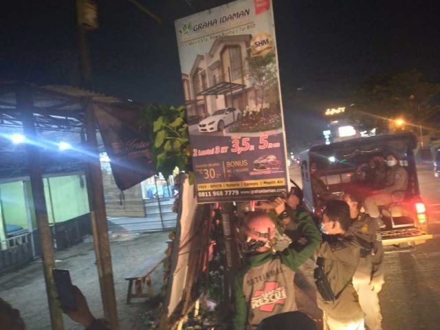 Operasi tersebut dibagi menjadi dua tim. Tim pertama melaksanakan penurunan spanduk, umbul-umbul kain yang melintang dan tim kedua melaksanakan penurunan spanduk kain dan banner di sisi kanan kiri jalan.