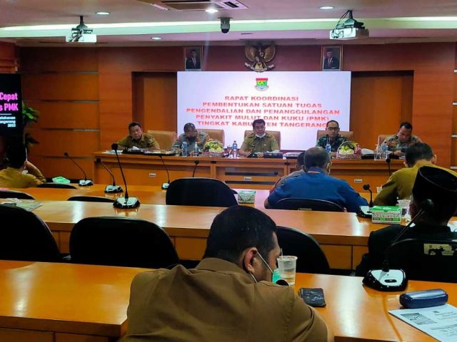 Hal tersebut diungkapkan Sekda saat memimpin rapat koordinasi pembentukan satuan tugas pengendalian dan penanggulangan PMK di Ruang Rapat Wareng, Gedung Bupati Tangerang, Selasa (24/5).