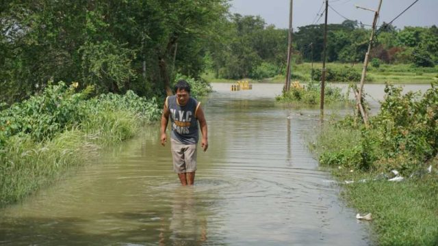 Mardi Umarela, warga setempat mengatakan, pengendara bisa saja memaksakan diri namun berisiko motor mati hingga tercebur sawah dan anak sungai sudah terendam sangat tinggi.