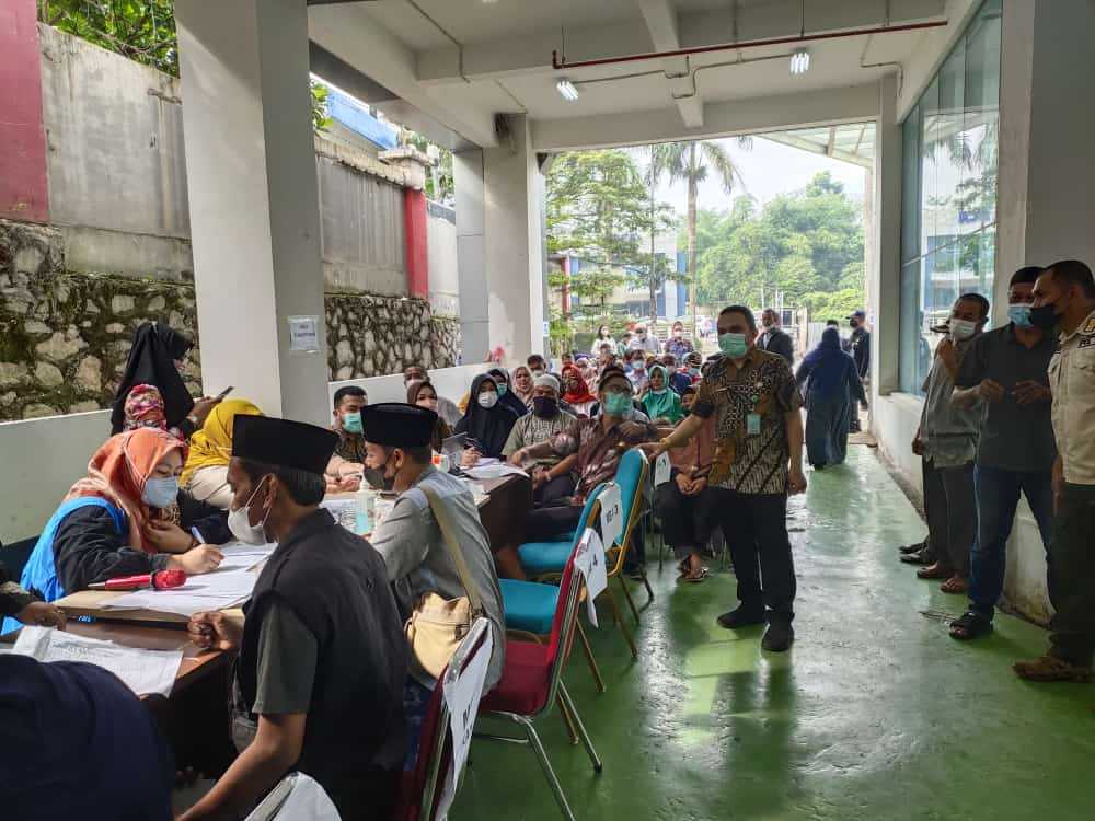 SERPONG, TANGERANGEKSPRES.CO.ID-Sebanyak 393 calon jamaah haji asal Kota Tangsel menjalani tes Swab PCR di Labkesda milik Dinas Kesehatan Kota Tangsel, Kamis 9 Juni 2022. Jumlah tersebut sesuai dengan jumlah calon jamaah haji kloter pertama yang akan diberangkatkan ke tanah suci Mekah.