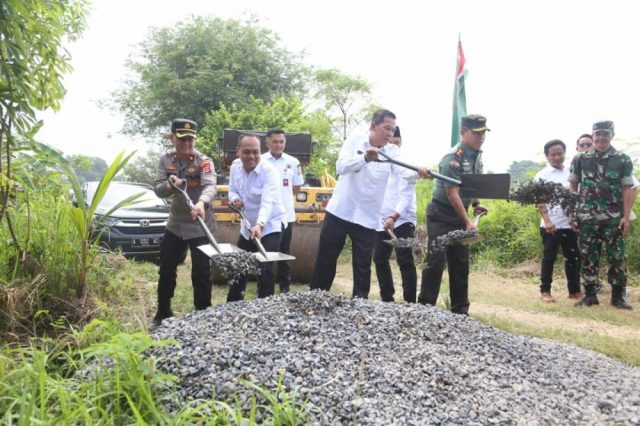 PERESMIAN: Walikota Serang Syafrudin, Dandim 0602 Serang, Kolonel Infanteri Susilo dan jajaran lainya membangun jalan alternatif secara simbolis di jalan Lawang Agung di Lingkungan Kenari, Kelurahan Kasunyatan, Kecamatan Kasemen, Rabu (8/6).