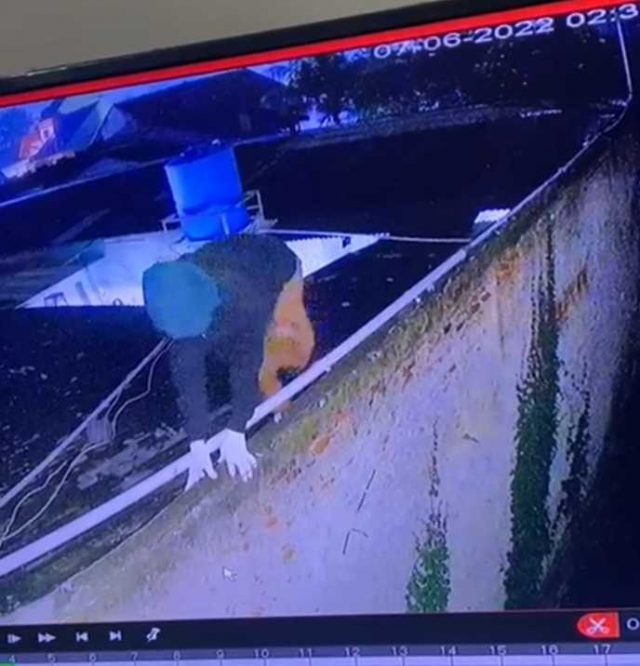 KABUPATEN TANGERANG, TANGERANGEKSPRRS.CO.ID– Rekaman kamera pengawas atau dikenal CCTV merekam detik-detik maling memakai kupluk. Aksi nekadnya itu menaiki atap toko ponsel di Kecamatan Rajeg, Kamis 9 Juni 2022.
