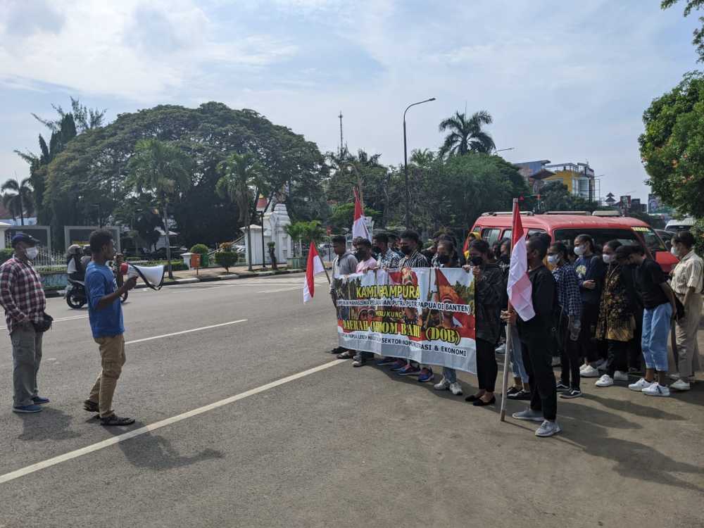 Dukungan tersebut disampaikannya lewat aksi solidaritas yang dilakukan di jalan Veteran, Alun-alun Kota Serang, Selasa (14/6). Aksi dilakukan sebagai langkah dalam mendukung diwujudkannya Daerah Otonom Baru (DOB) atau pemekaran di Pulau Papua.