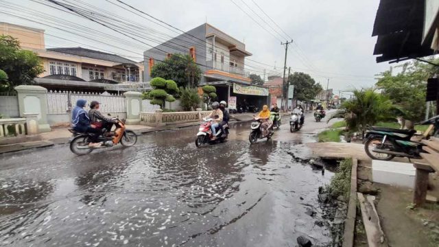 Ahmad Roni, warga setempat menjelaskan, luapan air diakibatkan saluran air di pinggir jalan tersebut sudah mendangkal dan menyempit. Sehingga air dari ke dua kampung tersebut meluap ke jalan.