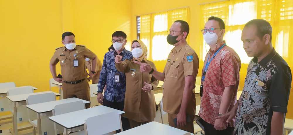 Bupati Serang Ratu Tatu Chasanah didampingi Kepala Dindikbud Kabupaten Serang Asep Nugrahajaya meninjau ruang kelas yang telah diperbaiki di SDN Cilengo, Kecamatan Padarincang, Kabupaten Serang, Selasa, 21 Juni 2022. FOTO AGUNG GUMELAR/TANGERANG EKSPRES