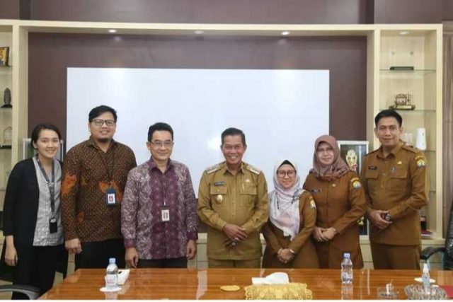 Direktur Manajemen Strategis, EPK, dan Kemitraan Pemerintah Daerah Kantor OJK Regional 1 DKI Jakarta dan Banten, Sabarudin berfoto bersama Walikota Serang Syafrudin di kantor Pemkot Serang, Selasa, 5 Juli 2022. FOTO SYIROJUL UMAM/TANGERANG EKSPRES