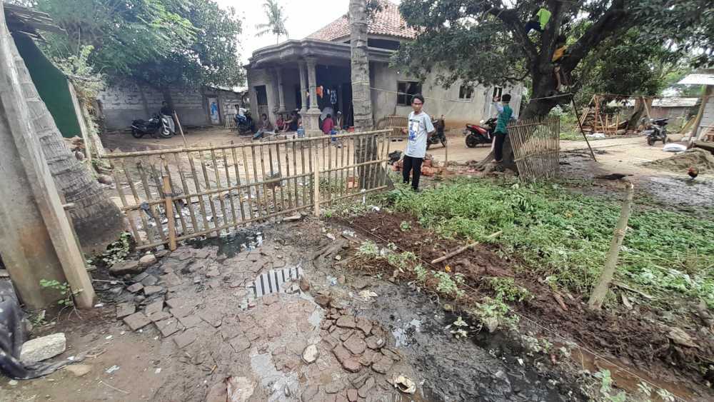 TANGERANG, TANGERANGEKSPRES.CO.ID- Sengketa perbatasan tanah antara Rusdi dengan Sulaeman berakhir dengan pemagaran jalan lingkungan, di antara ke dua rumah mereka, di Kampung Ranca Labuh, RT 11 RW 02, Desa Ranca Labuh, Kecamatan Kemiri, Kabupaten Tangerang, Rabu (13/7/2022).