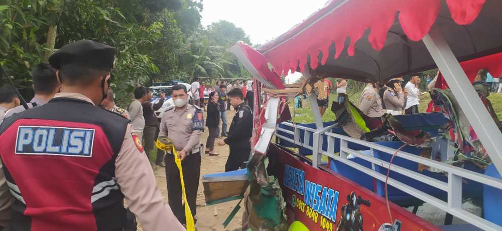 Mobil Odong-odong yang membawa 30 penumpang ditabrak kereta api, 9 penumpangs tewas.