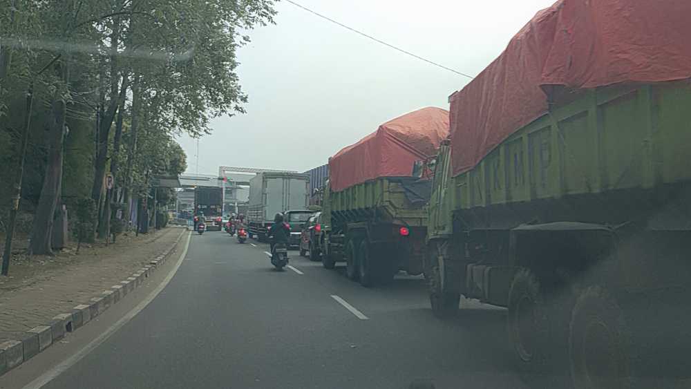 Rombongan truk pengangkut tanah merah tersebut melintas pada pukul 10.00 WIB. Mereka melaju dari arah Tigaraksa menuju pintu tol Cikupa.