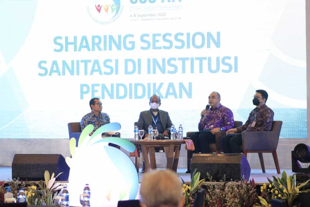 DISKOMINFO FOR TANGERANG EKSPRES. PEMAPARAN: Bupati Tangerang A Zaki Iskandar (dua dari kanan) memaparkan program sanitasi berbasis sekolah kepada peserta CSS XX di Hall ICE BSD, Kecamatan Pagedangan, Kabupaten Tangerang, Kamis (8/9).