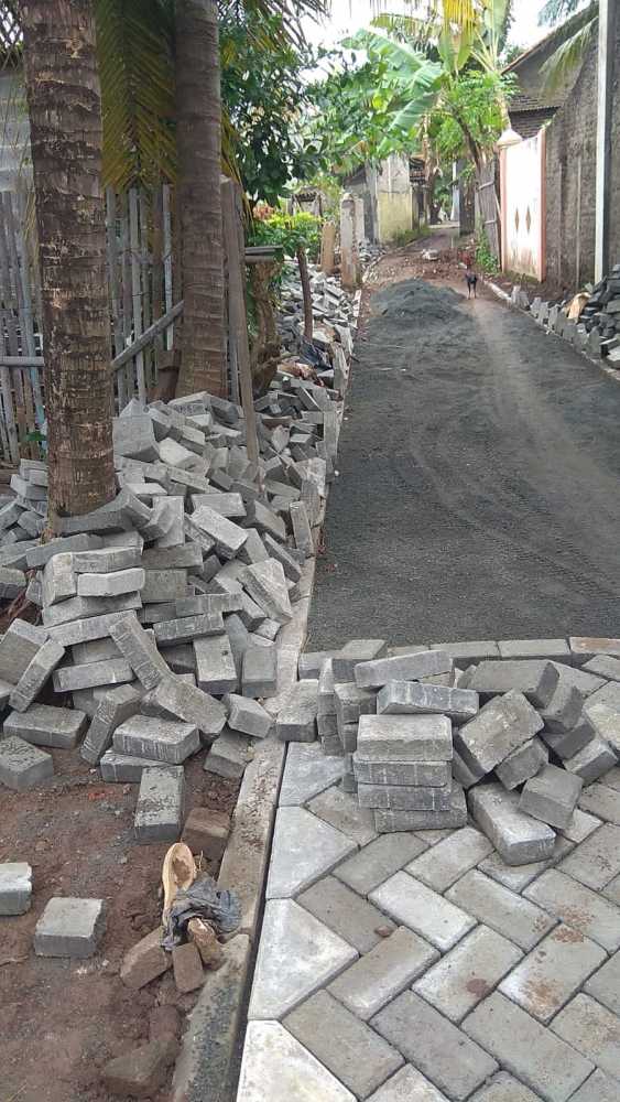TANGERANG — Paving blok bekas di Kampung Sangiang, RT 06 RW 02, Desa Sangiang, Kecamatan Sepatan Timur, Kabupaten Tangerang, yang dibongkar pemerintah desa setempat, berakibat perselisihan antara dua orang Kepala Keluarga (KK).