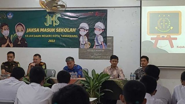 TANGERANG, tangerangeksres.co.id – Siswa harus memiliki latar belakang berkelakuan baik guna memudahkan masuk ke dunia kerja. Hal itu dikatakan Kepala Kejaksaan Negeri (Kejari) Kota Tangerang, Erich Polanda saat mengisi kegiatan Jaksa masuk Sekolah yang digelar di SMKN 2 Kota Tangerang, Senin (17/10).