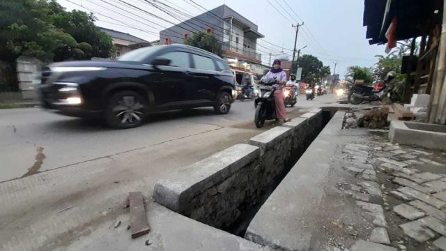 “Sampai ada pembeli yang bertanya, ini drainase kapan diperbaikinya? Padahal drainase sudah menyempit, dangkal nyaris rata dengan jalan, sehingga air sering meluap ke jalan,” tutur Toridin, menirukan ucapan pelanggannya, belum lama.