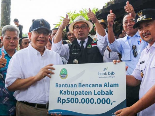 “bank bjb bersama Gubernur Jawa Barat Bapak Ridwan Kamil turut berduka cita terhadap bencana alam banjir bandang yang terjadi di Kabupaten Lebak – Banten dan berharap bantuan yang diberikan kepada masyarakat bisa meringankan beban para korban,” ungkap Direktur Utama bank bjb Yuddy Renaldi.