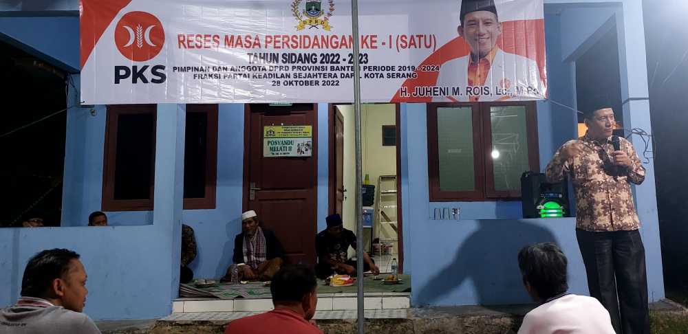 SERANG,TANGERANGEKSPRES.CO.ID-Ketua Fraksi PKS DPRD Provinsi Banten H Juheni M Rois mengunjungi Kompleks Taman Banten Lestari, Kota Serang, tepatnya di Sekretariat RW 16, Sabtu (29/10) malam. Ia datang guna menyerap aspirasi warga dalam rangka reses masa persidangan ke-1 2022.