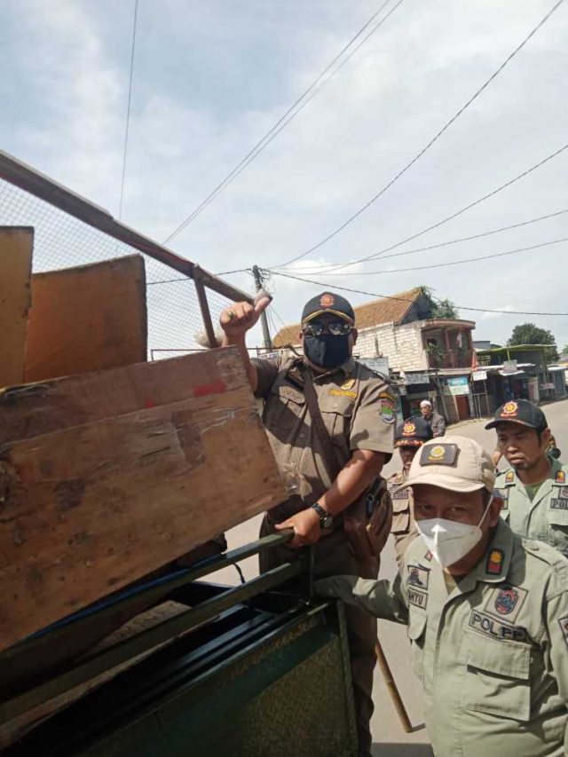 TANGERANG — Trantib Kecamatan Pasar Kemis melayangkan surat peringatan ke 3 (SP3) kepada pedagang kaki lima (PKL), di Jalan Puri, Desa Pasar Kemis dan Desa Sukamantri, Kecamatan Pasar Kemis, Kabupaten Tangerang.