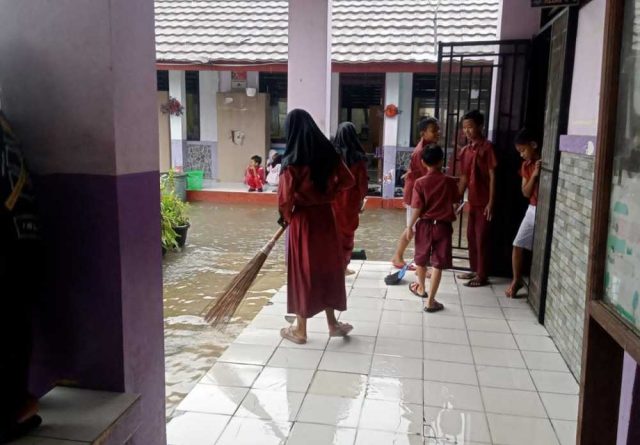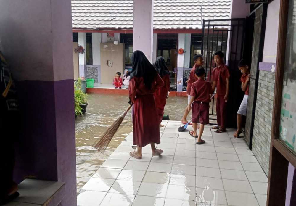 “Karena banjir, pembelajaran siswa menjadi terganggu. Pembelajaran baru bisa dimulai sampai ruangan kelas sudah bersih dan genangan sudah surut,”paparnya.