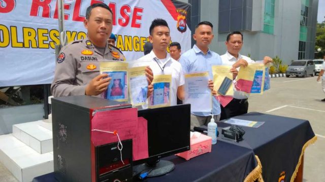 TIGARAKSA,TANGERANGEKSPRES.CO.ID–Kapolresta Tangerang Kombespol Raden Romdhon Natakusumah mengatakan, kepolisian berhasil mengamankan satu orang pelaku pemerasan melalui aplikasi media sosial. Tersangka pria berinisil B (22) ditangkap di daerah Badan Siapi-Api, Provinsi Riau dekat dengan perbatasan Malaysia.