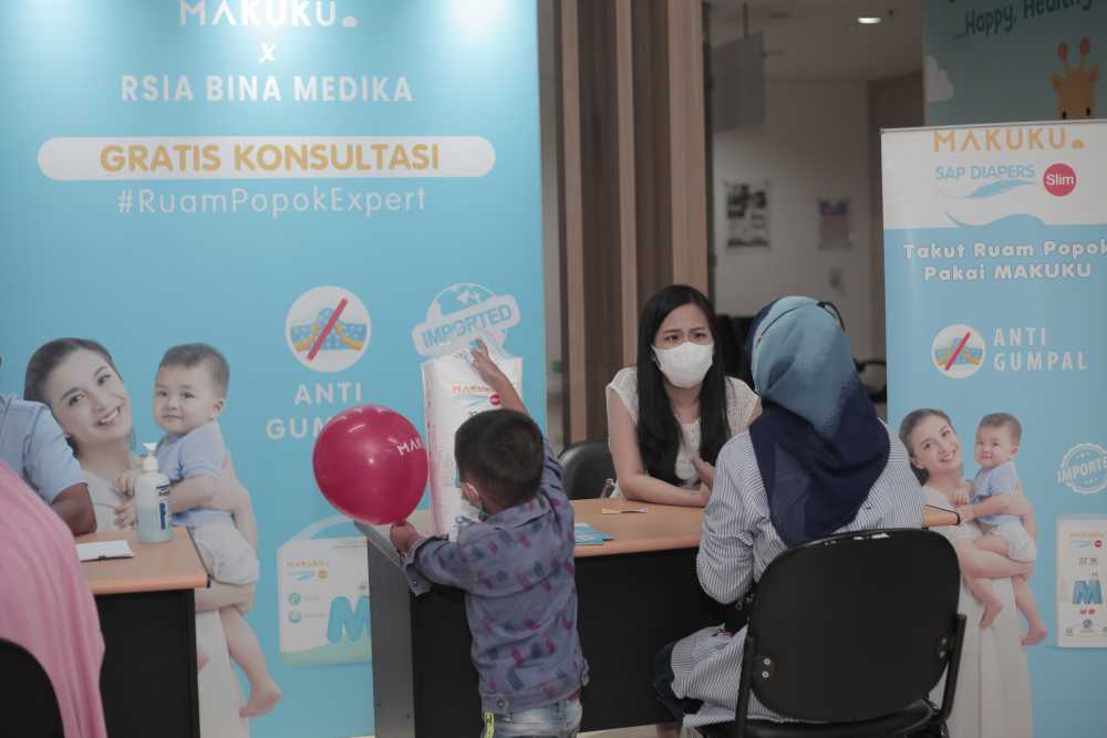 Oleh karena itu, sebagai upaya mendukung kesehatan anak di Indonesia, MAKUKU bersama Rumah Sakit Bina Medika Tangerang mengadakan konsultasi masalah ruam popok gratis yang didampingi langsung oleh dokter spesialis anak dan spesialis kulit. Program ini dilakukan pada tanggal 18 Desember 2022. Sebanyak 52 Ibu telah melakukan konsultasi masalah ruam popok gratis secara langsung dengan dr. Fransisca Handy, Sp.A, IBCLC, dr. Donny Ronaldo, Sp.A dan dr. Nathanne Septihandi, Sp.A di RSIA Bina Medika Tangerang.