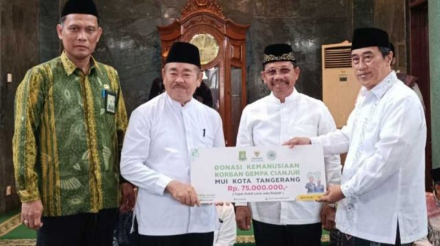 TANGERANG. tangerangekspres.co.id – Majelis Ulama Indonesia (MUI) Kota Tangerang menyalurkan bantuan donasi untuk membantu warga korban gempa di Kabupaten Cianjur melalui Baznas Kota Tangerang, Kamis (22/12).