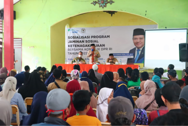 Dalam kegiatan tersebut dewan Muhammad Rizal pun secara simbolis menyalurkan bantuan santunan jaminan sosial BPJS ketenagakerjaan kepada masyarakat yang menerima jaminan sosial pendidikan, kecelakaan kerja, dan jaminan kematian.