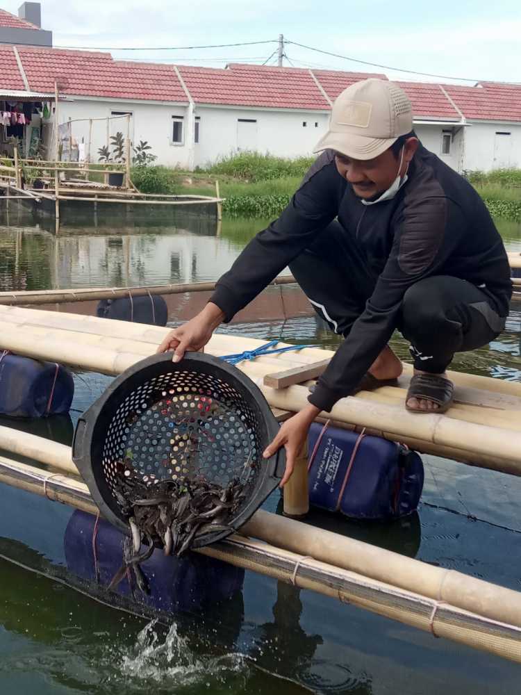 Warga yang tergabung ke dalam kelompok penerima manfaat (KPM), berhasil mengembangkan budidaya ikan lele di keramba jaring apung, di tandon air Perumahan Pondok Permata Rajeg, Desa Rajeg Mulya, Kecamatan Rajeg, Kabupaten Tangerang.