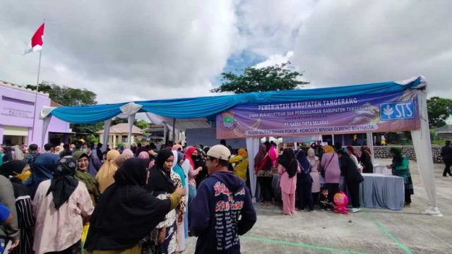 TangerangEkspres.co.id – Minyak goreng subsidi diserbu ibu-ibu saat bazaar di Kecamatan Solear. Merek membeli guna persiapan kebutuhan menjelang puasa.
