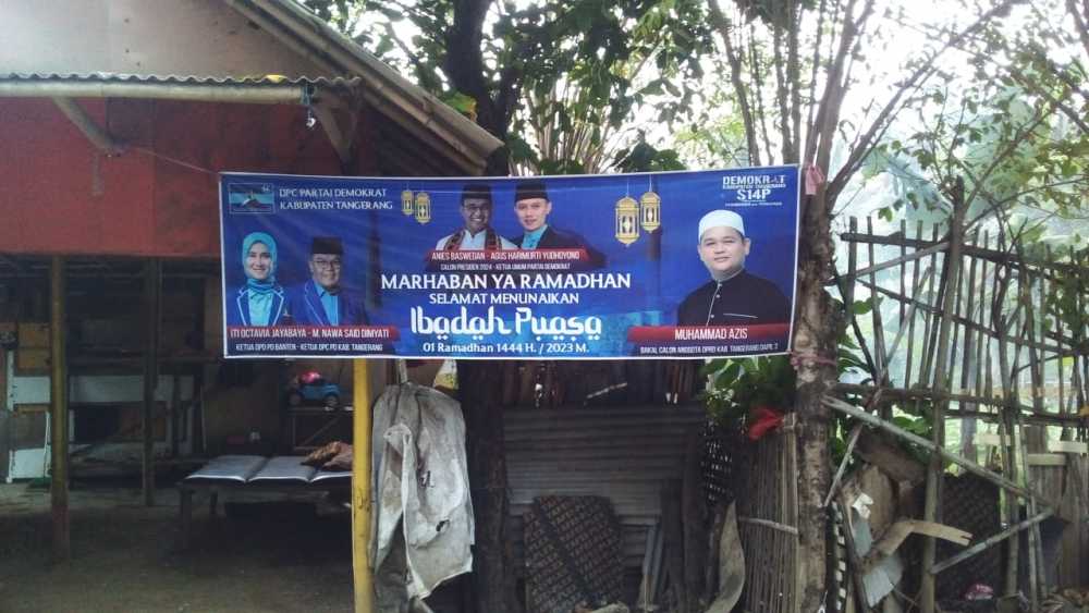 Seperti halnya sepanduk dan baliho Bakal Calon Anggota Legislatif (Bacaleg) Dapil III Kabupaten Tangerang Muhamad Azis Terpantau di berbagai titik spanduknya dengan gambar Anies – AHY.