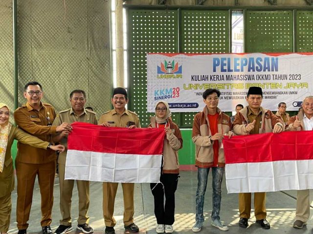TangerangEkspres.co.id – Badan Kesatuan Bangsa dan Politik (Bakesbangpol) Kabupaten Serang, melakukan pelepasan mahasiswa Universitas Banten Jaya (Unbaja) Serang, untuk melaksanakan Kuliah Kerja Nyata (KKN) di Kabupaten Serang. Pelepasan itu, dibarengi dengan pembagian bendera merah putih sebanyak seribus picis per kelompoknya, untuk dipasang di masing-masing desa yang menjadi tujuan KKN nya.