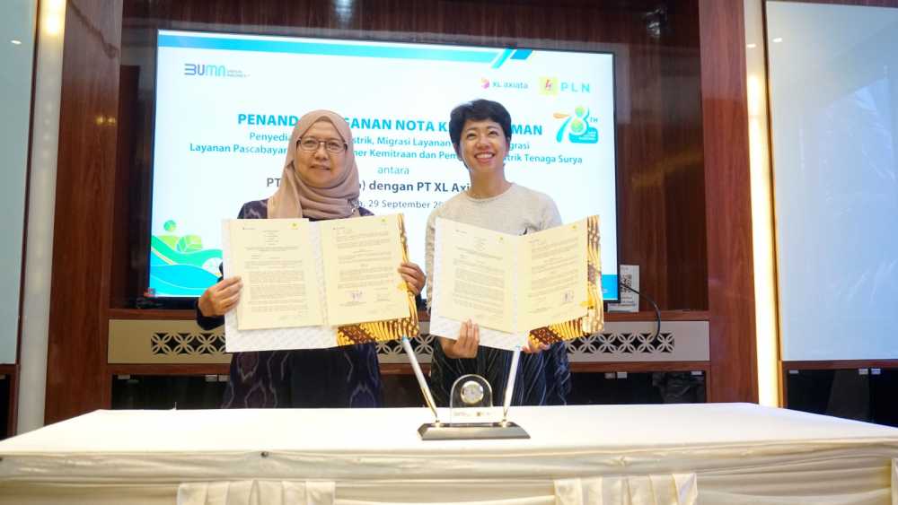 Nota Kesepahaman atau Memorandum of Understanding (MoU) kerja sama tersebut ditandatangani oleh Direktur & Chief Enterprise and Corporate Affairs Officer XL Axiata, Yessie D. Yosetya dan Direktur Retail dan Niaga PLN, Edi Srimulyanti di Jakarta, Jumat 29 September 2023.