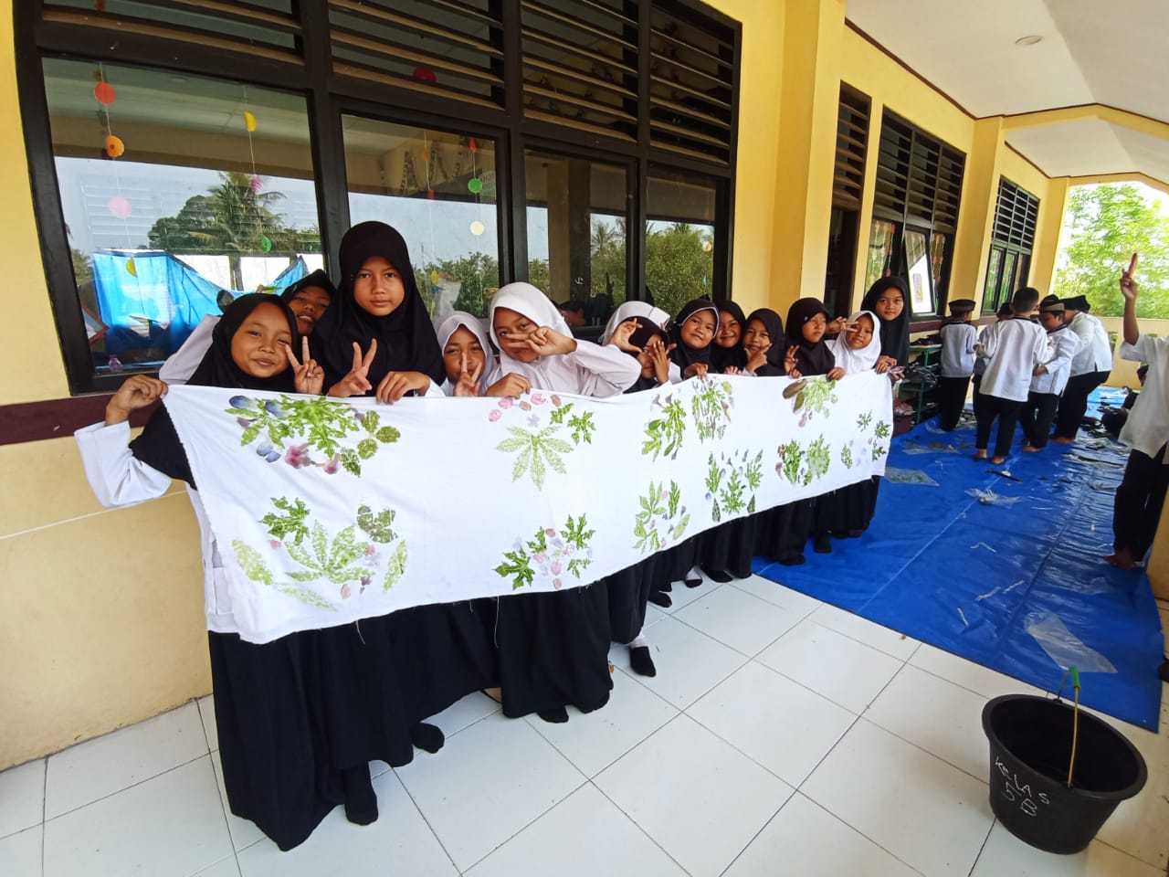 Dalam kegiatan tersebut, siswa diajarkan bagaimana cara membuat kain batik dari bahan dedaunan yang ada di sekitar sekolah. Selain dedaunan, kegiatan membatik ini juga menggunakan bahan-bahan yang sangat ramah lingkungan.