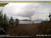 SERANG,TANGERANG EKSPRES. CO. ID - Gunung Anak Krakatau (GAK) di perairan Selat Sunda, Kabupaten Lampung Selatan, Provinsi Lampung, terpantau mulai kembali mengeluarkan aktivitas erupsi...